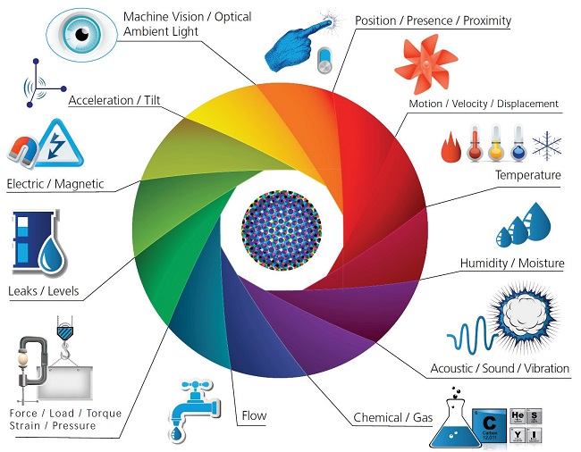 센서는 측정 대상물로부터 압력, 온도, 가속도, 생체신호 등 정보를 감지해 전기적 신호로 변환시켜 주는 장치로 IoT의 핵심요소 중 하나다. IoT를 통해 구현되는 스마트 환경에서 센서는 매우 중요한 역할을 담당한다. 기존에 센서의 개념은 단지 '검출기'가 어떤 특정한 물질을 '감지'하는 수준에 머물렀으나, 현재의 센서는 감지 신호를 전달해 중앙처리장치가 어떠한 판단을 내리도록 하는 형태로 발전하고 있다.