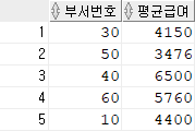 각 부서별로 사원들 급여의 평균 값이 계산됐다.