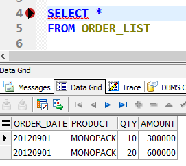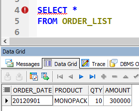 -> INSERT INTO ORDER_LIST VALUES('20120901','MONOPACK',10,300000)