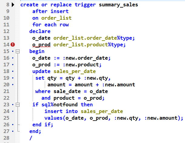 sales_per_date 테이블에 update 구문을 실행하는데, 기존에 있는 qty, amount 를 누적합해서 다시 Set 합니다. 여기서 where문을 통해 현재 새로 들어온 날짜과 상품이 일치하는 데이터만 해당 update문을 실행하도록 조건을 걸었습니다.