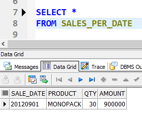 SALES_PER_DATE 테이블은 트리거에 의해서 주문날짜별 상품별 물량과 가격이 합산되어 업데이트 되어있음을 확인할 수 있습니다.