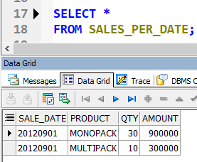 SALES_PER_DATE 테이블은 트리거에 의해 판매날짜별, 상품별 누적 물량과 가격이 업데이트 되었습니다.