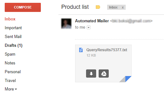 And if we open the attachment, there it is, the result of our query: