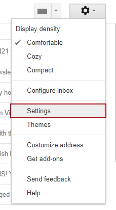 Log onto your Gmail account at www.gmail.com and click the Settings in the top right corner: