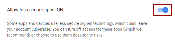 Note: This setting is not available for accounts with 2-Step Verification enabled. Such accounts require an application-specific password for less secure apps access.