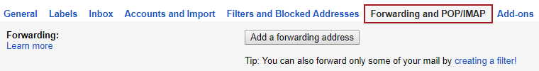 Choose the Forwarding and POP/IMAP tab at the top of the page: